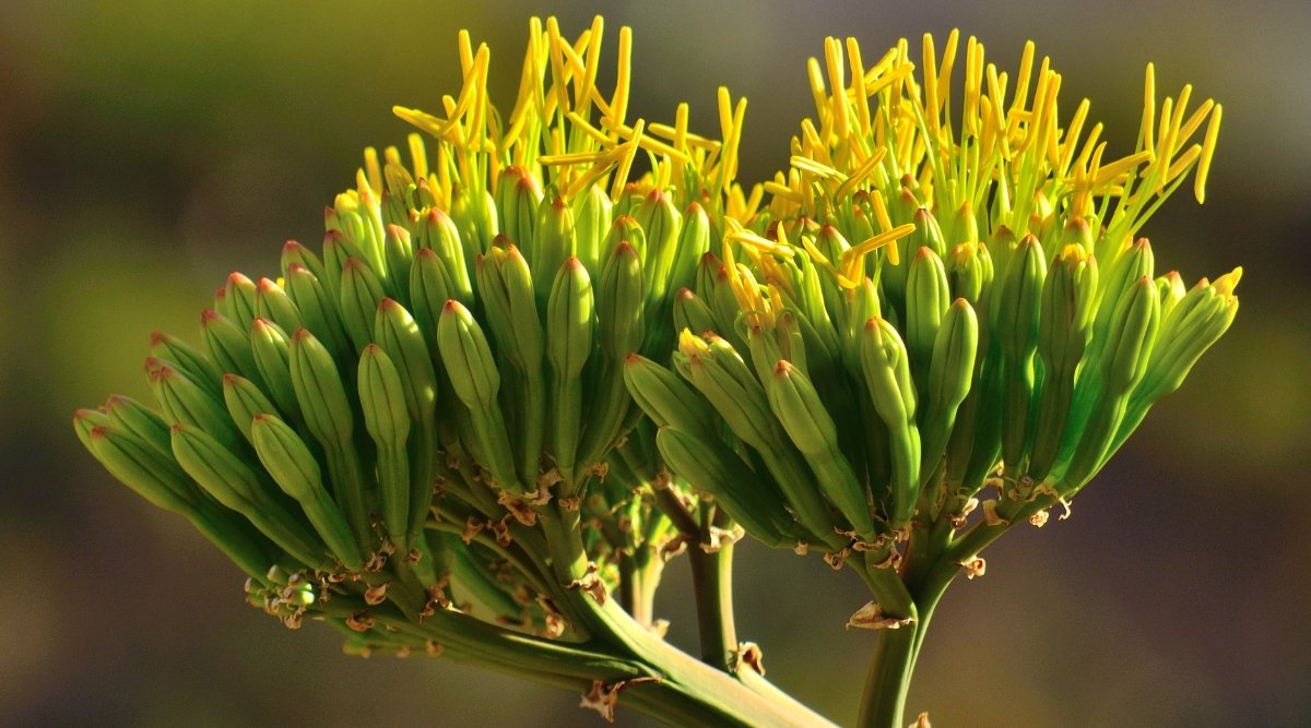 american agave It needs to store a large amount of starch to have the energy and resources necessary to produce a flower stem. This inflorescence can grow up to 25 to 30 feet tall, and this narrow spike features long, tubular, yellow flowers that eventually produce seeds.